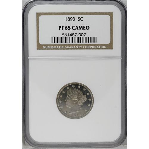 1893 5C PR65 Cameo NGC. Pale lilac and golden patina l 1893[5C] PR65 Cameo NGC.