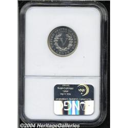 <table><tr><td><table><tr><td>1893 5C PR66 Cameo NGC. Nicely frosted design elements offer a pronounced contrast with the deeply reflective fields. This Gem proof is virtually free of hairlines or other blemishes. Population: 16 in 66, 3 finer (3/04). <BR><BR><B>Important notice:</B> Heritage usually auctions material at the rate of 200-250 lots per hour. On some occasions eBay Live bid software or the Internet may not be able to keep up with the pace of the auction. We recommend placing a realistic absentee bid now as insurance to avoid disappointment. Occasionally the auctioneer may eliminate or reject an eBay Live bid, and the auctioneer may also reopen a lot after the close of the eBay live bidding (usually because we missed an audience bid), and may reject your bid even if it shows you as the winning bidder. By bidding via eBay Live, you agree that Heritage may award the lot to another bidder at its sole discretion under the circumstances described above or any other reasonable circumstances. Since eBay bids are not shown to us until we open the lot on the floor, we treat those bids just like floor bids. In most cases the floor responds before the eBay bid is presented to us, due to Internet lag time, so for consistency we have made it a policy that floor bids are always considered first over tie eBay live bids. Also please note that all Heritage lots purchased through eBay Live carry a 20% Buyer's Premium. Please make sure you read the Terms and Conditions before you bid. <BR><BR><B>IMPORTANT ANNOUNCEMENT ABOUT RESERVES:</B> Heritage now divulges all reserves on its web site 7 days before every auction. If you want to know whether the reserve on this lot has been met, and if not, what the reserve amount is, please visit this lot page on the HeritageCoin.com web site, or email: bid@HeritageGalleries.com </span></font></td></tr></table></td></tr></table>