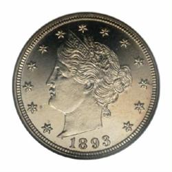 <TABLE cellSpacing=0 cellPadding=0 width="100%" bgColor=#000000 border=0><TBODY><TR><TD width="100%"><TABLE cellSpacing=1 cellPadding=3 width="100%" border=0><TBODY><TR><TD width="100%" bgColor=#79735c><FONT face=arial color=#ffffff size=3><B>Description</B> </FONT></TD></TR><TR><TD width="100%" bgColor=#ffffff><FONT face=arial size=2><B>1893 5C PR66 Cameo NGC.</B></I> This shimmering, hairline-free cameo shows even, light golden-olive toning over each side. The fields are deeply reflective and there are generous amounts of mint frost on the devices that give the coin its distinctive two-toned cameo appearance. Population: 11 in 66, 2 finer (7/03). </FONT></TD></TR></TBODY></TABLE></TD></TR></TBODY></TABLE><BR><A name=PricesRealized></A><TABLE cellSpacing=0 cellPadding=0 width="100%" bgColor=#000000 border=0><TBODY><TR><TD width="100%"><TABLE cellSpacing=1 cellPadding=3 width="100%" border=0><TBODY><TR><TD width="100%" bgColor=#79735c><A name=PR><FONT face=arial color=#ffffff size=3><B>Previous Prices from Heritage Auctions</B> </FONT></A></TD></TR><TR><TD bgColor=#f6f6ed><TABLE cellSpacing=0 cellPadding=0 width="100%" border=1><TBODY><TR><TD align=middle width="33%"><B>Date</B></TD><TD align=middle width="33%"><B>Service</B></TD><TD align=middle width="33%"><B>Price</B></TD></TR><TR bgColor=whitesmoke><TD width="33%"><B>01/11/2003</B></TD><TD width="33%">PCGS</TD><TD width="33%">$2,645.00</TD></TR><TR bgColor=whitesmoke><TD width="33%"><B>09/28/2002</B></TD><TD width="33%">PCGS</TD><TD width="33%">$1,955.00</TD></TR><TR bgColor=whitesmoke><TD width="33%"><B>11/15/2001</B></TD><TD width="33%">PCGS</TD><TD width="33%">$902.75</TD></TR></TBODY></TABLE></TD></TR><TR><TD bgColor=#ffffff><FONT face=arial size=1 ?>PLEASE NOTE: All prices realized reflect the final hammer price PLUS the buyer's premium in auctions that charge a buyer's premium. Each item has a notation at the top of the listing indicating whether that lot included a buyer's premium. Example: A item that sells with a final hammer price of $100 and a 20% buyer's premium will display with a price realized of $120. All information listed is intended to be as accurate as possible, but errors are possible. Please use this guide carefully and inform us of any inaccuracies. </FONT></TD></TR></TBODY></TABLE></TD></TR></TBODY></TABLE><BR><TABLE cellSpacing=0 cellPadding=0 width="100%" bgColor=#000000 border=0><TBODY><TR><TD width="100%"><TABLE cellSpacing=1 cellPadding=3 width="100%" border=0><TBODY><TR><TD width="100%" bgColor=#79735c colSpan=6><FONT face=arial color=#ffffff size=3><B>Price Guide*</B> </FONT></TD></TR><TR bgColor=#f6f6ed><TD align=middle><B>Grade</B> </TD><TD align=middle><B>Coin World<BR>(Trends)</B> </TD><TD align=middle><B>Numismedia<BR>Retail</B> </TD><TD align=middle><B>Numismedia<BR>Wholesale</B> </TD><TD align=middle><B>Coin<BR>Universe</B> </TD><TD align=middle><B>Heritage<BR>Value Index</B> </TD></TR><TR bgColor=#ffffff><TD align=middle>65</TD><TD align=right>---</TD><TD align=right>---</TD><TD align=right>---</TD><TD align=right>---</TD><TD align=right>$390.25</TD></TR><TR style="FONT-WEIGHT: bold" bgColor=#cccfdd><TD align=middle>66</TD><TD align=right>---</TD><TD align=right>---</TD><TD align=right>---</TD><TD align=right>---</TD><TD align=right>---</TD></TR><TR bgColor=#ffffff><TD align=middle>67</TD><TD align=right>---</TD><TD align=right>---</TD><TD align=right>---</TD><TD align=right>---</TD><TD align=right>---</TD></TR><TR bgColor=#ffffff><TD colSpan=6><FONT size=1>*All information listed is intended to be as accurate as possible, but errors are possible. No item may be returned or refused based on this information which is provided as a service to our customers. You should contact each pricing source directly to determine the accuracy of this information. </FONT></TD></TR></TBODY></TABLE></TD></TR></TBODY></TABLE><BR><TABLE cellSpacing=0 cellPadding=0 width="100%" bgColor=#000000 border=0><TBODY><TR><TD width="100%"><TABLE cellSpacing=1 cellPadding=3 width="100%" border=0><TBODY><TR><TD width="100%" bgColor=#79735c><FONT face=arial color=#ffffff size=3><B>Population Guide</B> </FONT></TD></TR><TR bgColor=#ffffff><TD align=middle><!-- Begin Output of Population Grid--><TABLE cellSpacing=0 cellPadding=0 width="100%" border=0><TBODY><TR><TD vAlign=center><TABLE cellSpacing=0 width="100%" border=1 cellsadding="3"><TBODY><TR><TD vAlign=center><TABLE cellSpacing=0 cellPadding=3 width="100%" border=1><TBODY><TR><TD vAlign=center align=middle bgColor=#f0f1e8 colSpan=2 <CENTER><FONT face=Arial size=2><B>PCGS Pop </B></FONT><CENTER></CENTER></TD><TD vAlign=center align=middle bgColor=#f0f1e8 colSpan=2><CENTER><FONT face=Arial size=2><B>NGC Pop</B></CENTER></FONT></TD></TR><TR><TD vAlign=center><FONT face=Arial size=2>(66)</FONT> </TD><TD vAlign=center align=right><FONT face=Arial size=2>4</FONT> </TD><TD vAlign=center><FONT face=Arial size=2>(66)</FONT> </TD><TD vAlign=center align=right><FONT face=Arial size=2>11</FONT> </TD></TR><TR><TD vAlign=center><FONT face=Arial size=2>(>66)</FONT> </TD><TD vAlign=center align=right><FONT face=Arial size=2>0</FONT> </TD><TD vAlign=center><FONT face=Arial size=2>(>66)</FONT> </TD><TD vAlign=center align=right><FONT face=Arial size=2>2</FONT> </TD></TR></TBODY></TABLE></TD></TR></TBODY></TABLE></TD></TR></TBODY></TABLE><!-- End Output of Population Grid--> Important notice: Heritage usually auctions material at the rate of 200-250 lots per hour. On some occasions eBay Live bid software or the Internet may not be able to keep up with the pace of the auction. We recommend placing a realistic absentee bid now as insurance to avoid disappointment. Occasionally the auctioneer may eliminate or reject an eBay Live bid, and the auctioneer may also reopen a lot after the close of the eBay live bidding (usually because we missed an audience bid), and may reject your bid even if it shows you as the winning bidder. By bidding via eBay Live, you agree that Heritage may award the lot to 