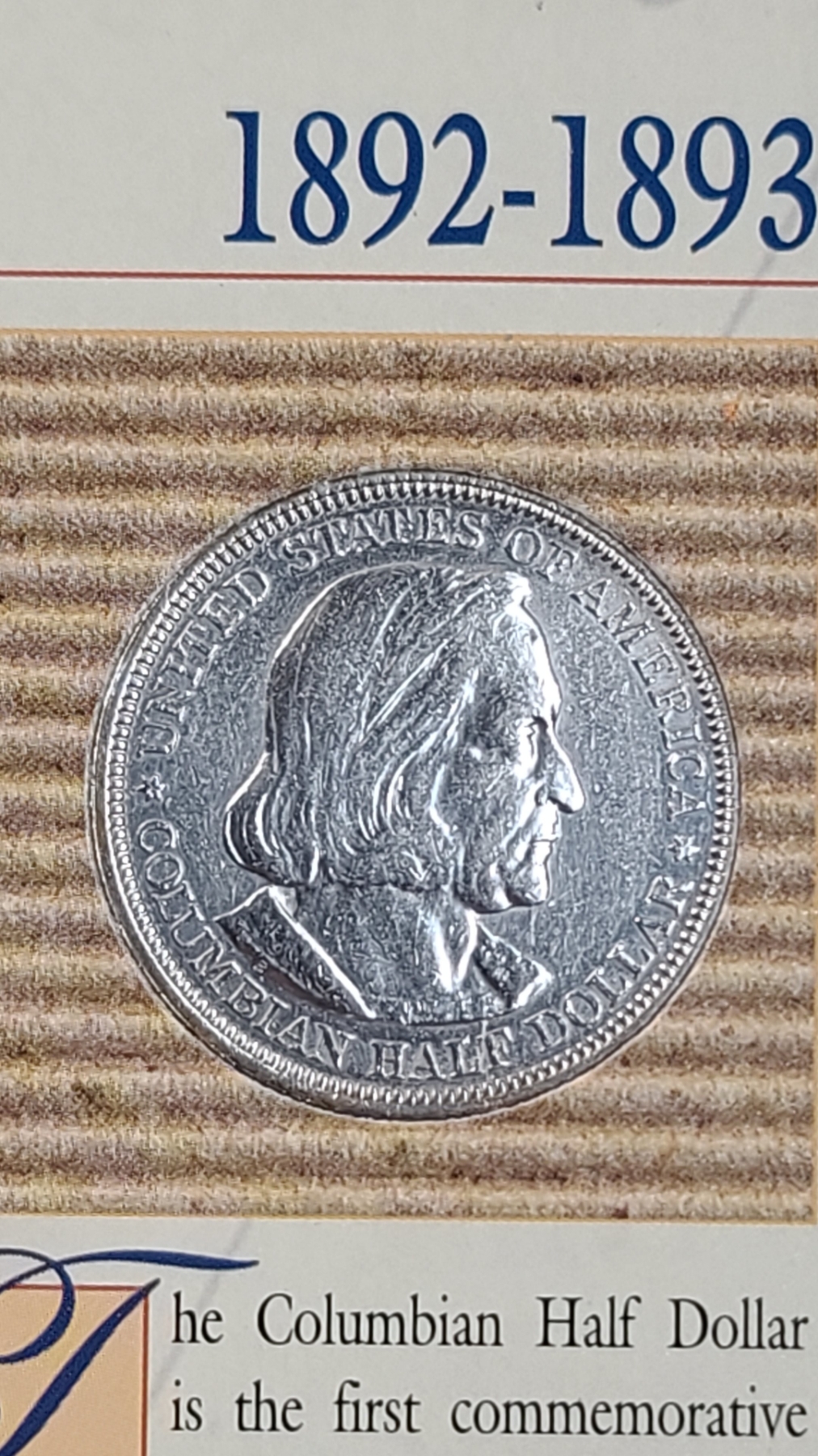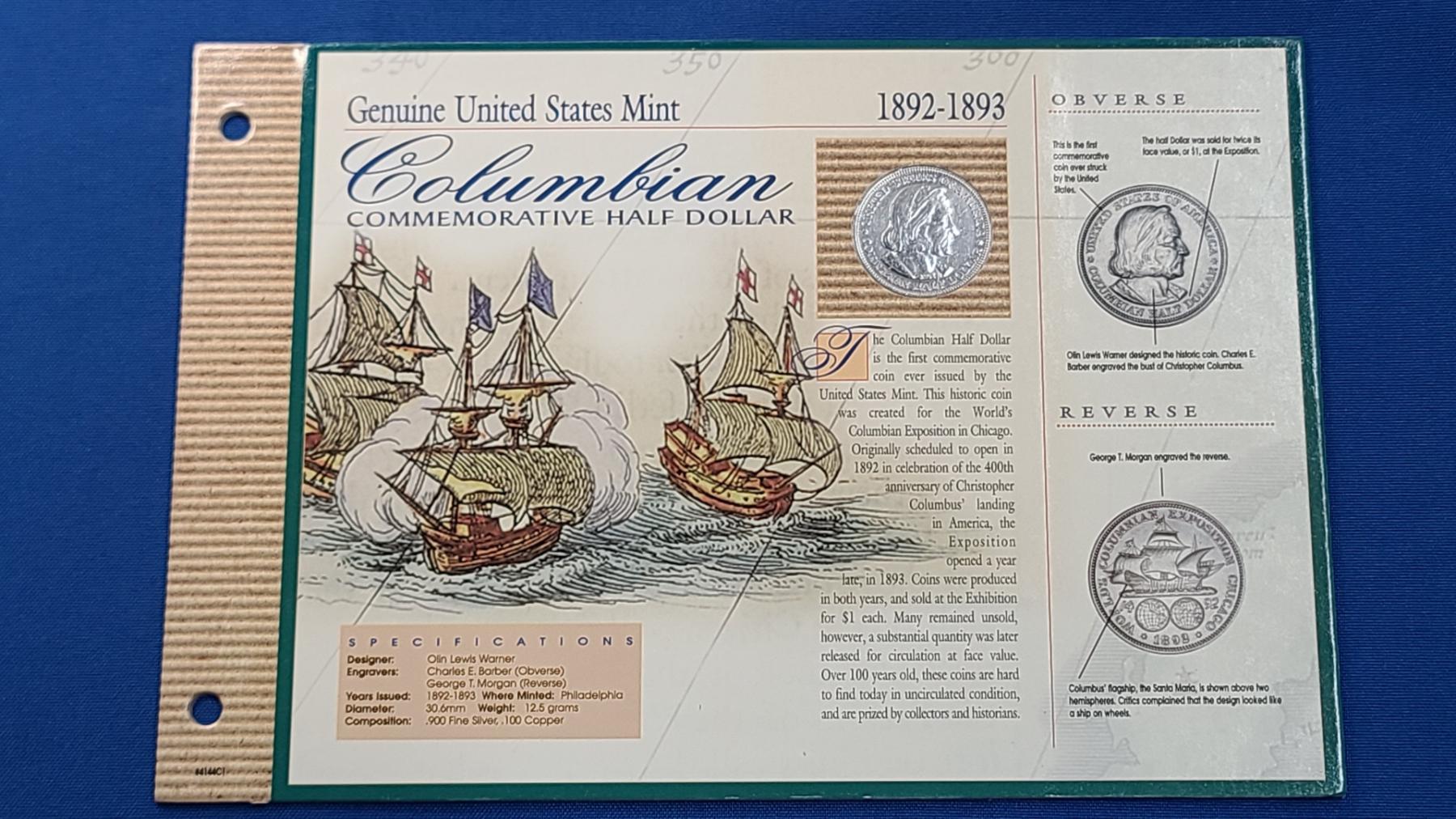 1893 90% Columbian Commemorative Half Dollar On American Historic Society Display Card