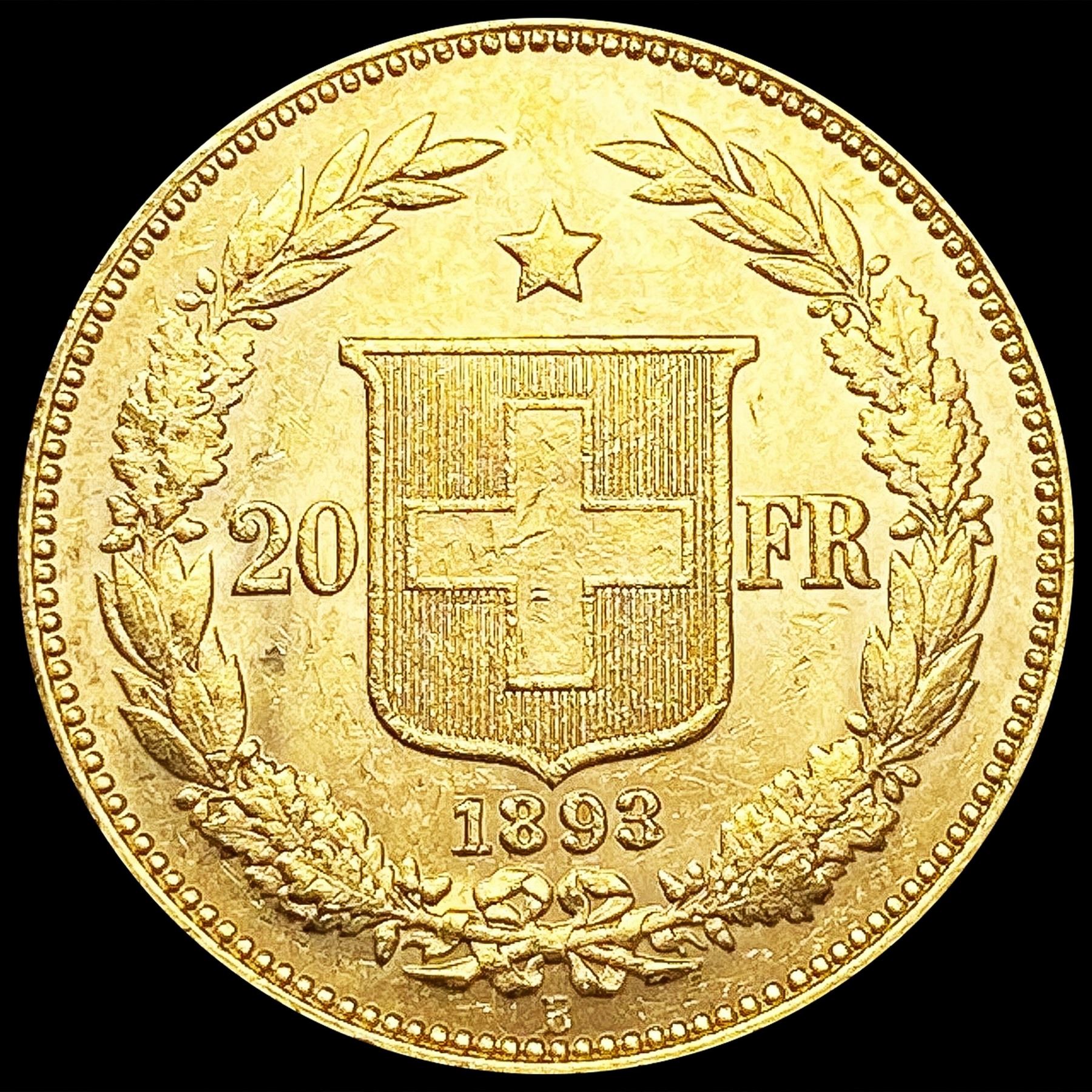 1893-B Swiss .1867oz Gold 20 Francs UNCIRCULATED