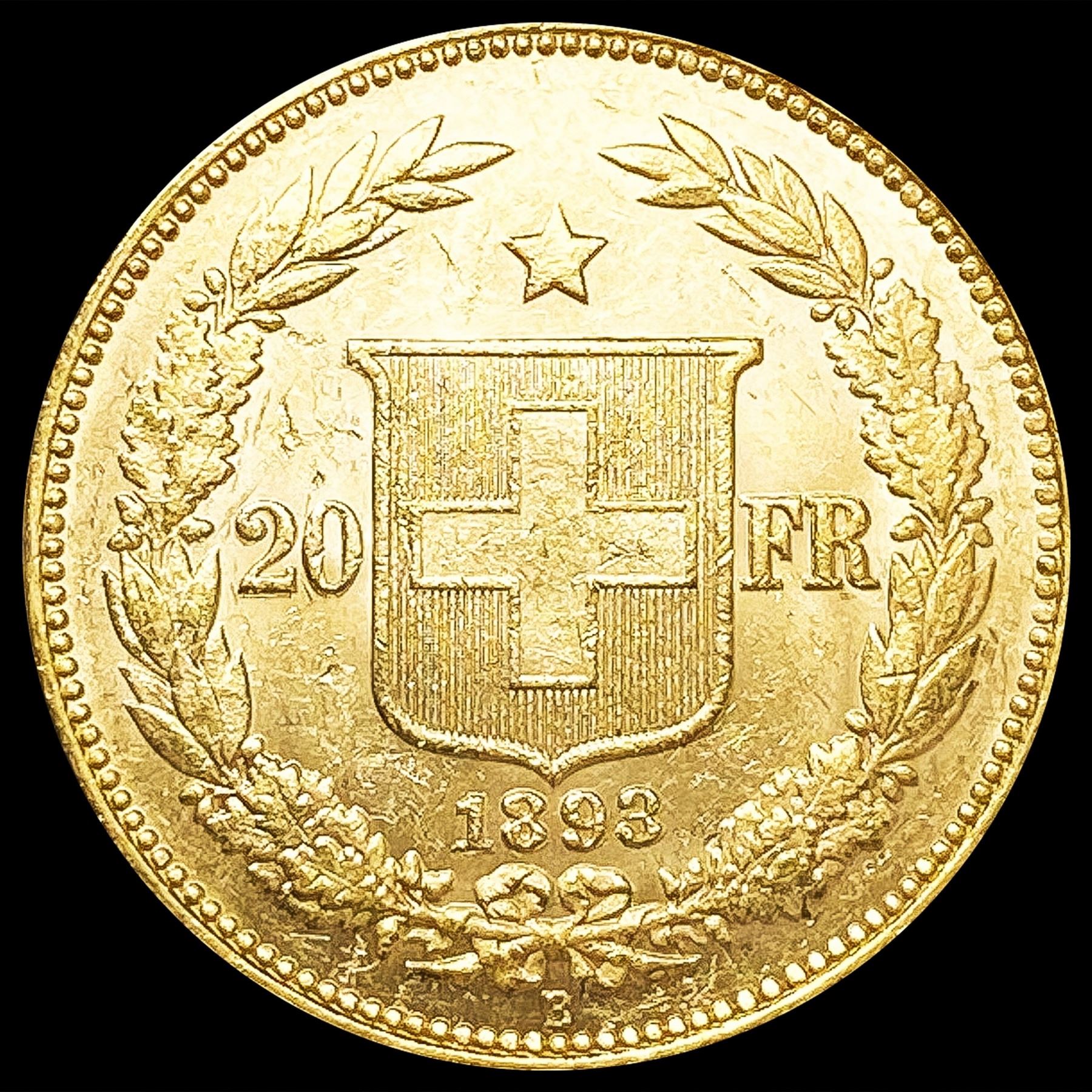 1893-B Swiss .1867oz Gold 20 Francs UNCIRCULATED