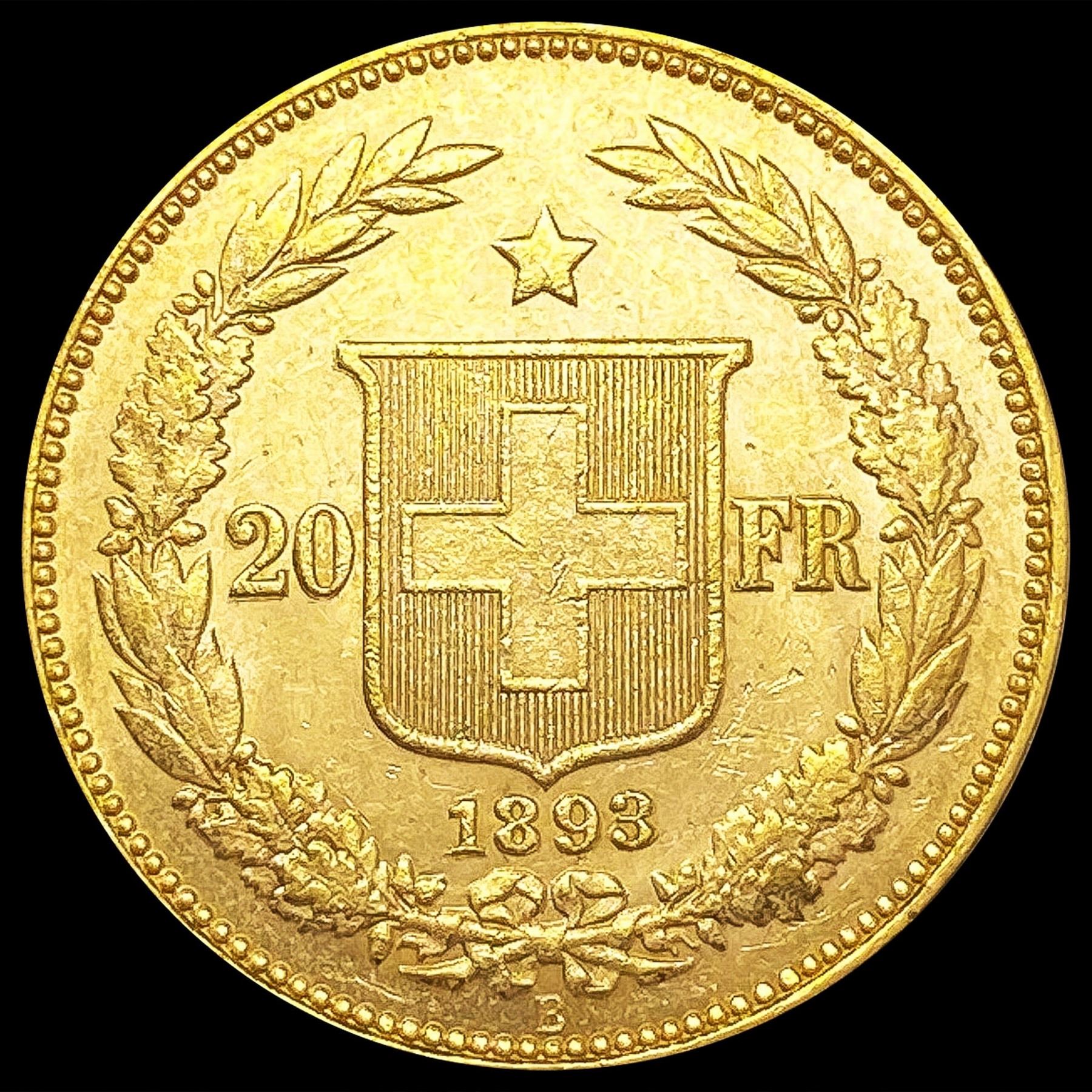 1893-B Swiss .1867oz Gold 20 Francs UNCIRCULATED