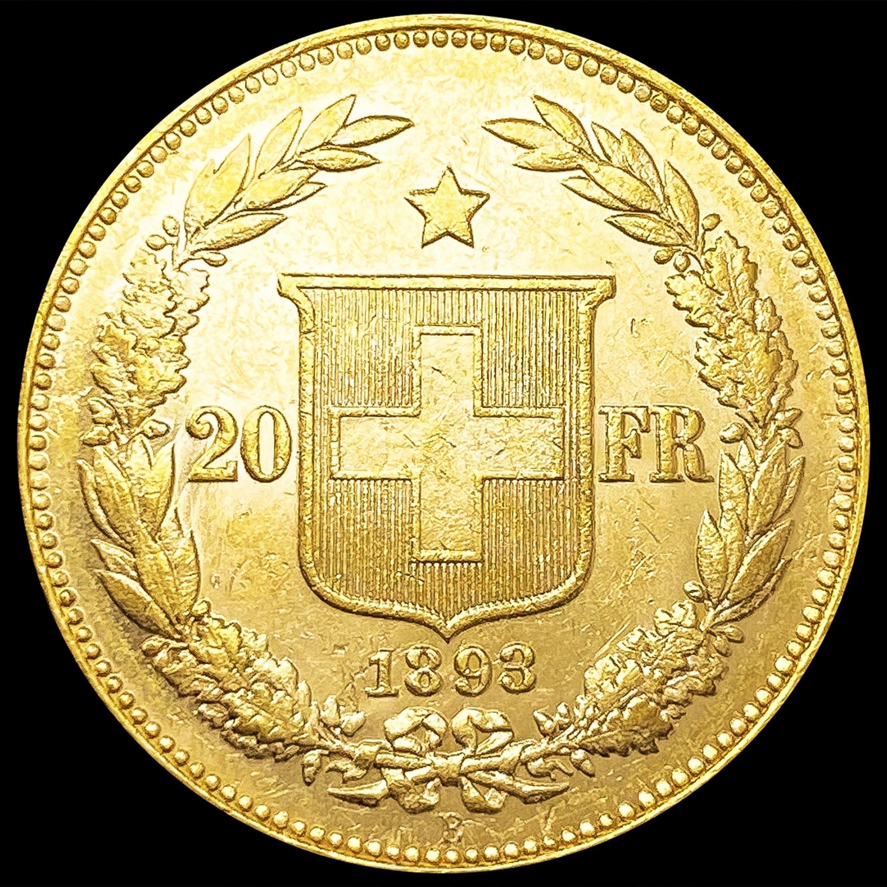 1893-B Swiss .1867oz Gold 20 Francs UNCIRCULATED