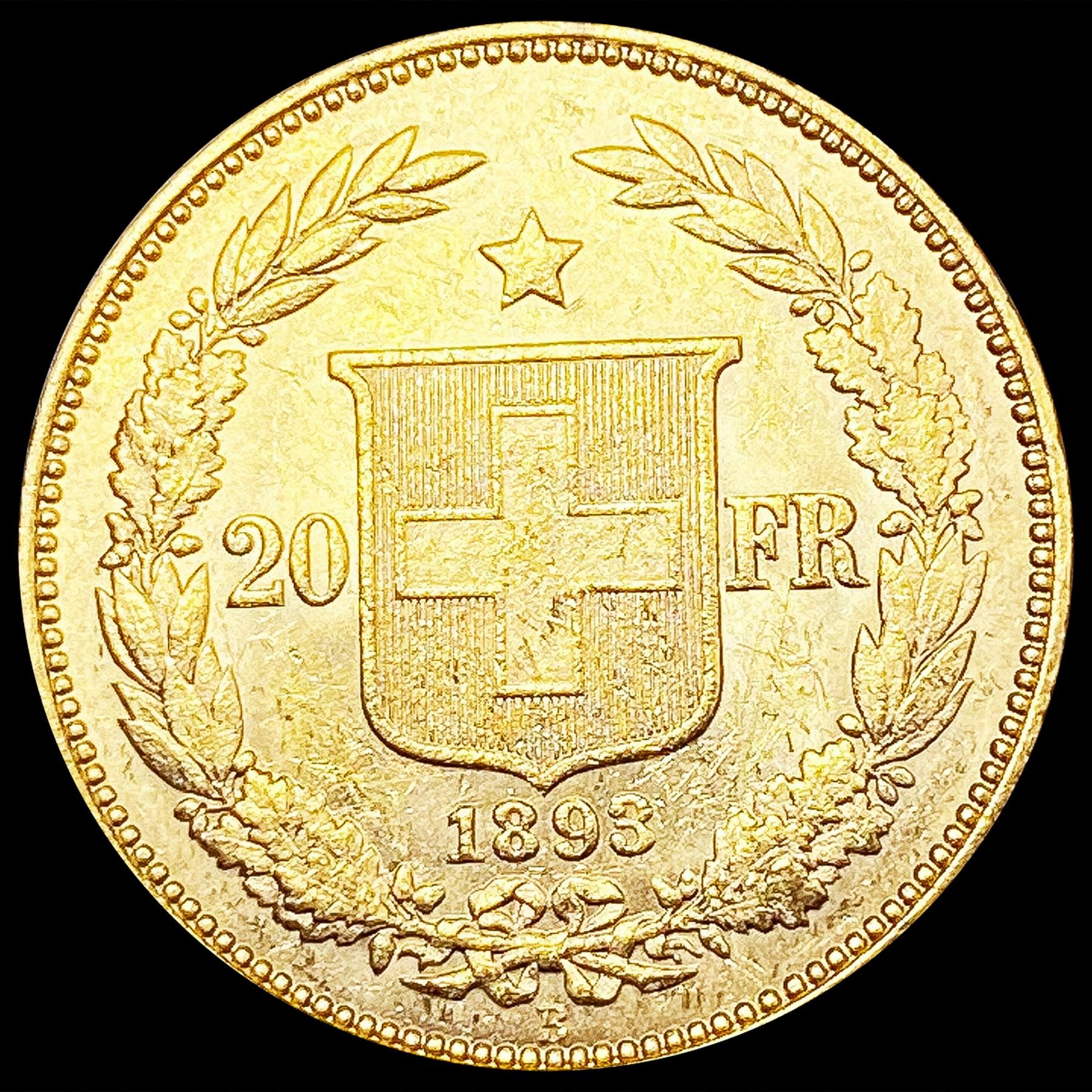 1893-B Swiss .1867oz Gold 20 Francs UNCIRCULATED