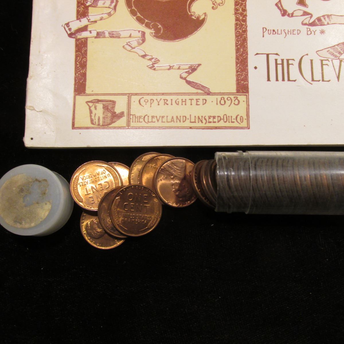 1893 Booklet "The Cow and Her Product" published by the Cleveland Linseed Oil Co.; & an original 1944 Gem BU Roll of Shell case Lincoln Cents in a plastic tube.