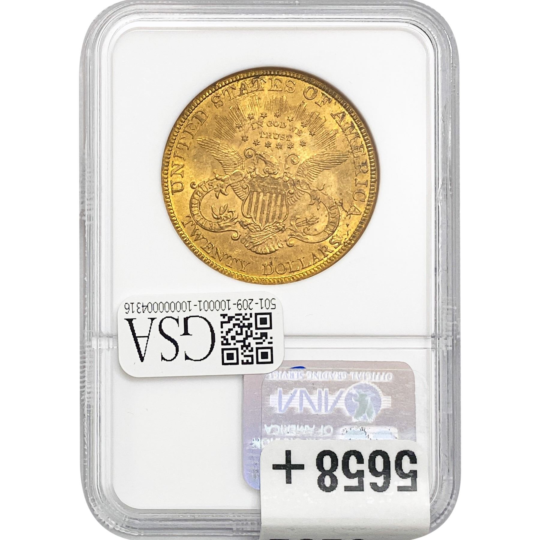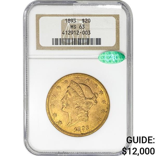 1893 CAC $20 Gold Double Eagle NGC MS63