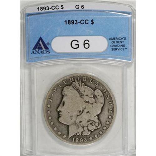 <B>1893-CC $1 G6 ANACS.</B></I> NGC Census: (20/2020). PCGS Population (39/3806). Mintage: 677,000. Numismedia Wsl. Price for NGC/PCGS coin in G6 : $194. (#7222)<BR><BR><B>Coin Engraver:</B> George T. Morgan<BR><BR><b>Shipping:</b> Coins & Currency (<a target="_blank" href="http://www.heritageauctions.com/common/shipping.php">view shipping information</a>)
