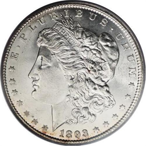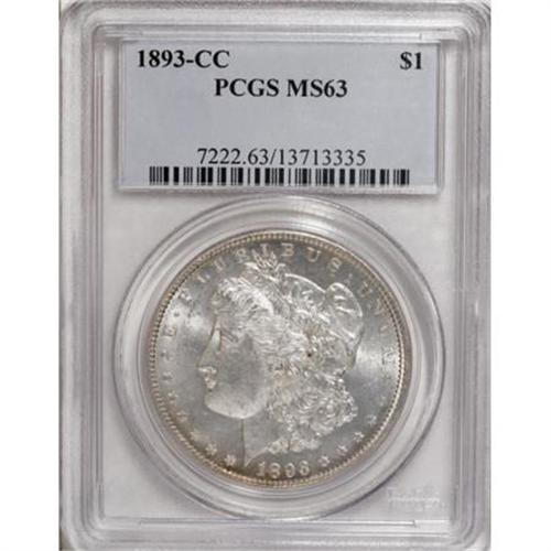 <B>1893-CC $1 MS63 PCGS.</B></I> Of the 677,000 1893-CC dollars struck, several hundred thousand were probably melted under the Pittman Act (David Bowers, 2006). Whispers of golden-tan color gravitate to the margins of this Select example, and the design features exhibit a better-than-average strike for the issue, evidenced by strong detail in the central areas. A few minor marks on the highly lustrous surfaces define the grade.<BR><BR><B>Coin Engraver:</B> George T. Morgan<BR><BR><b>Shipping:</b> Coins & Currency (<a target="_blank" href="http://www.heritageauctions.com/common/shipping.php">view shipping information</a>)