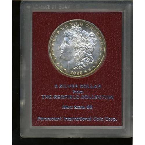 <B>1893-CC $1 Morgan Dollar MS65 Paramount International (MS62).</B></I> Ex: Redfield Collection. One suspects that the key 1893-CC dollar is a rarity in a Redfield holder, although Heritage has handled a few of these in the past few years. This crisply struck piece has lovely golden-brown and forest-green patina at the borders. A reeding mark on the cheek determines the grade.<BR><BR><B>Coin Engraver:</B> George T. Morgan<BR><BR><b>Shipping:</b> Coins & Currency (<a target="_blank" href="http://www.heritageauctions.com/common/shipping.php">view shipping information</a>)