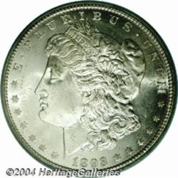 <B>1893-CC $1 Morgan Dollar MS66 SEGS (MS65).</B></I> The '93-CC Morgan is immensely popular in all grades, being the final year of issue from the Carson City Mint and sporting a reduced production figure of only 677,000 pieces. Rolls of mostly substandard Uncirculated pieces were available on an occasional basis until the 1970s, but very few quantity offerings have been available in recent years. Bowers relates that a bag of 1,000 coins was released into circulation in Great Falls, Montana. Additionally, the Redfield hoard contained a modest quantity of '93-CC's. Over the years, we have noticed a curious tendency for '93-CC Dollars to either have a flat-as-a-pancake strike or to be very sharply struck. There seems to be little middle ground on this issue. This particular Gem example is powerfully struck and brilliant, with flashy, semi-reflective fields. Only a few wispy blemishes are found in the left obverse field and in the vicinity of Liberty's chin. The serious collector of Morgan Dollars would have to search long and hard to locate an 1893-CC of equal eye appeal and technical merit. <BR><BR><B>Important notice:</B> Heritage usually auctions material at the rate of 200-250 lots per hour. On some occasions eBay Live bid software or the Internet may not be able to keep up with the pace of the auction. We recommend placing a realistic absentee bid now as insurance to avoid disappointment. Occasionally the auctioneer may eliminate or reject an eBay Live bid, and the auctioneer may also reopen a lot after the close of the eBay live bidding (usually because we missed an audience bid), and may reject your bid even if it shows you as the winning bidder. By bidding via eBay Live, you agree that Heritage may award the lot to another bidder at its sole discretion under the circumstances described above or any other reasonable circumstances. Since eBay bids are not shown to us until we open the lot on the floor, we treat those bids just like floor bids. In most cases the floor responds before the eBay bid is presented to us, due to Internet lag time, so for consistency we have made it a policy that floor bids are always considered first over tie eBay live bids. Also please note that all Heritage lots purchased through eBay Live carry a 20% Buyer's Premium. Please make sure you read the Terms and Conditions before you bid. </span></font></tr></table></td></tr></table>