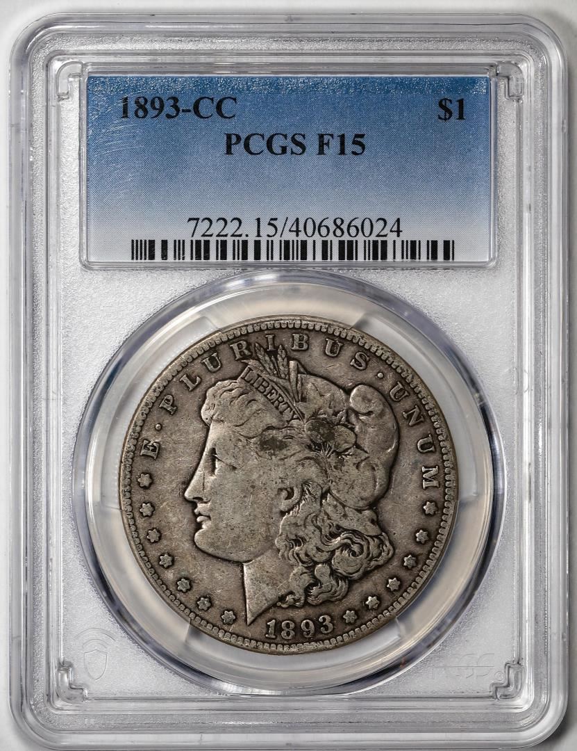 One 1893-CC $1 Morgan Silver Dollar Coin PCGS F15. PCGS Graded.