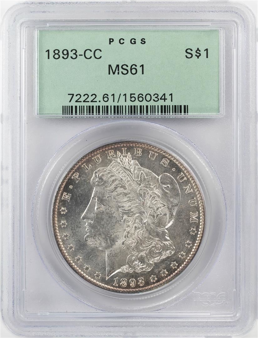 One 1893-CC $1 Morgan Silver Dollar Coin PCGS MS61 Old Green Holder. PCGS Graded.