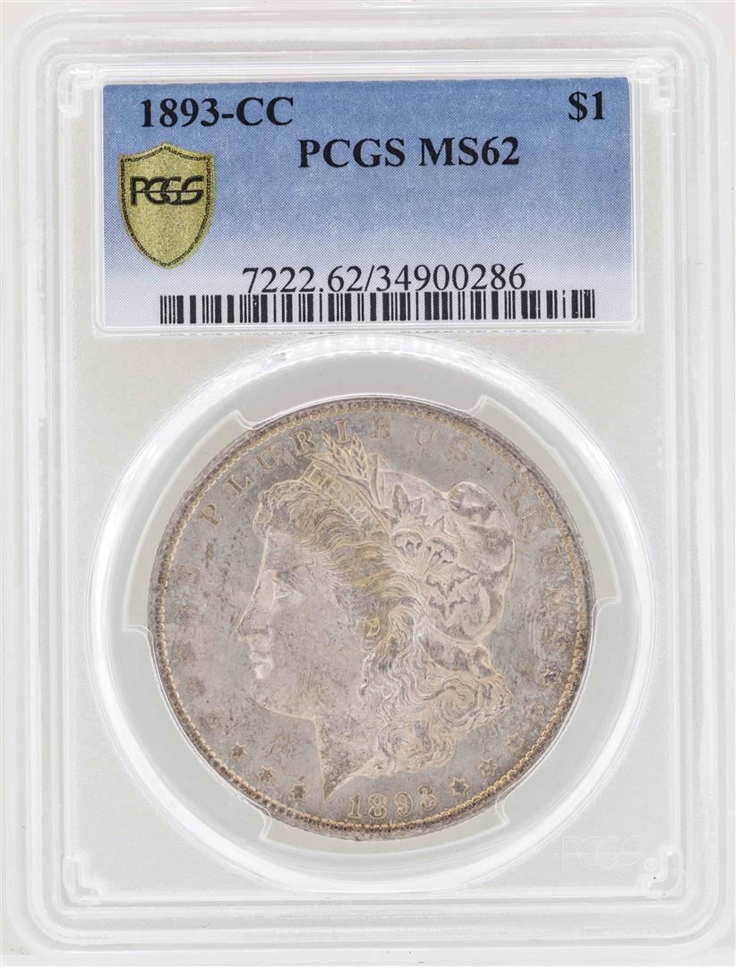 One 1893-CC $1 Morgan Silver Dollar Coin PCGS MS62. PCGS Graded.