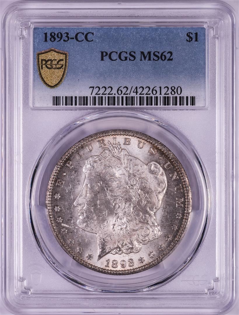 One 1893-CC $1 Morgan Silver Dollar Coin PCGS MS62. PCGS Graded.