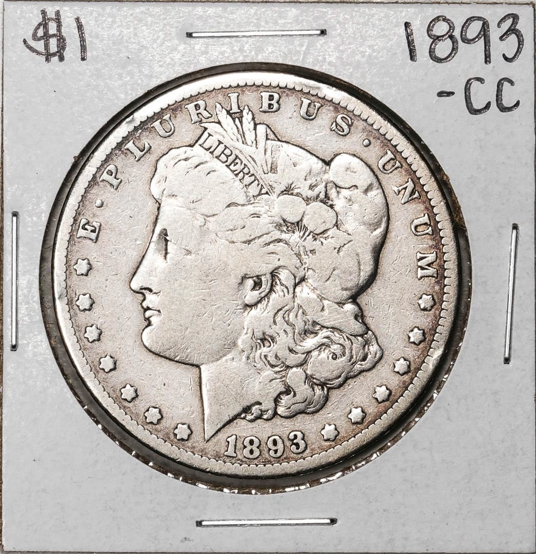 One 1893-CC $1 Morgan Silver Dollar Coin.