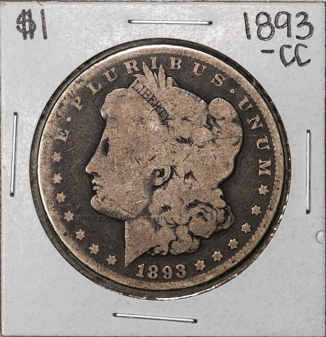 One 1893-CC $1 Morgan Silver Dollar Coin.