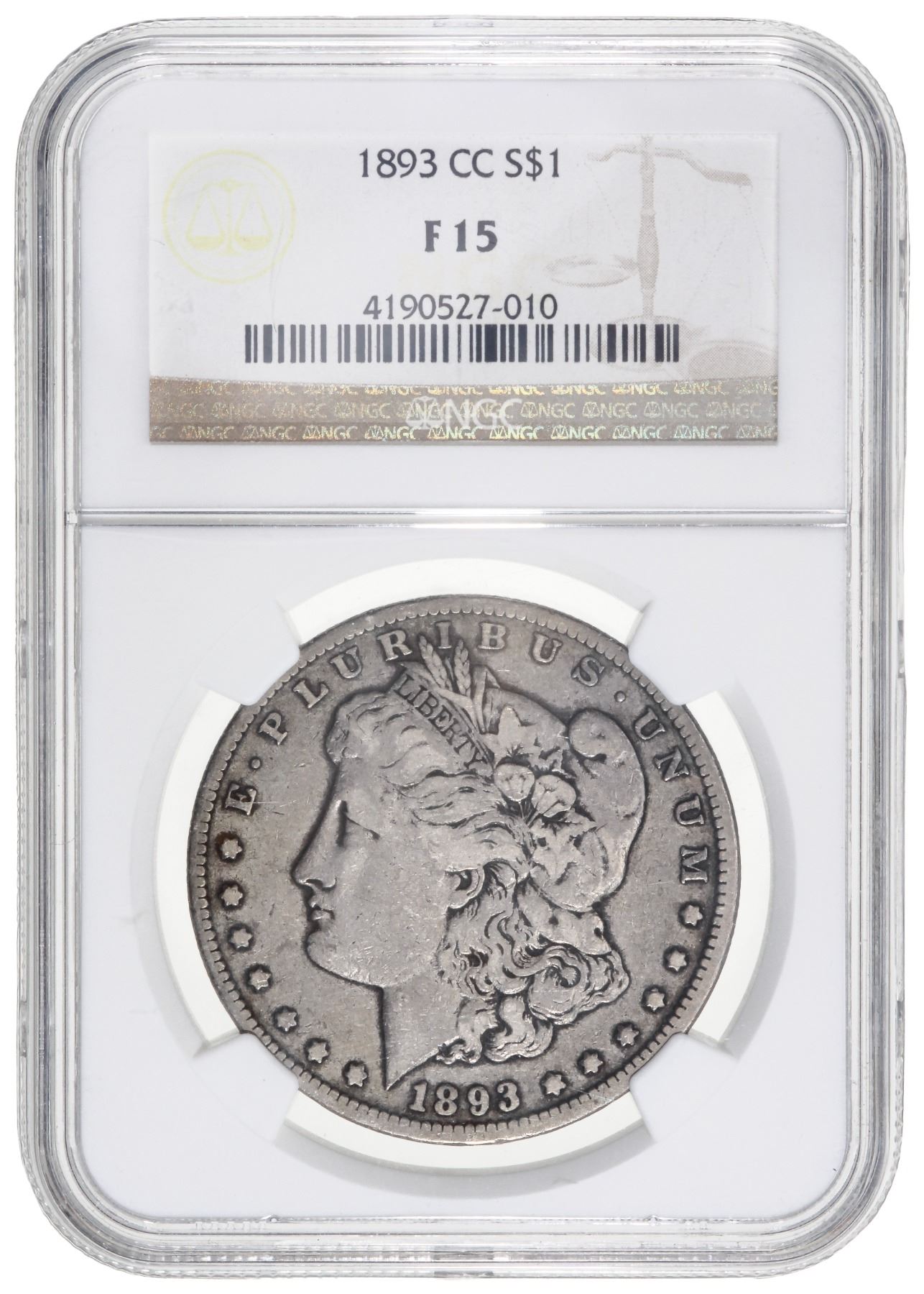 1893-CC, $1 Morgan Silver Dollar, NGC F15,