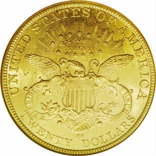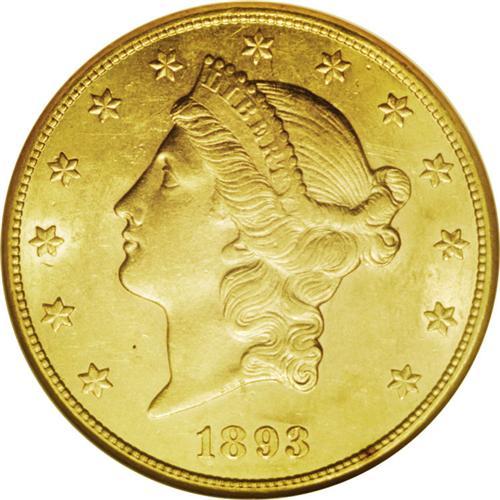<B>1893-CC<$20> AU58 NGC.</B></I> This final-year example is originally preserved with a mixture of green-gold and honey-gold color that is somewhat richer on the reverse. There are no areas of bothersome lack of detail, and we can find no singularly mentionable abrasions. One of only 18,402 pieces produced.<BR><I>From The Lewis (Tahoe) Collection.</B></I>