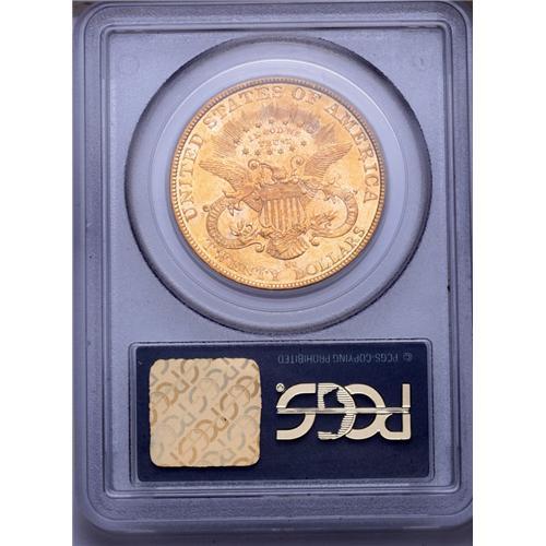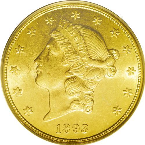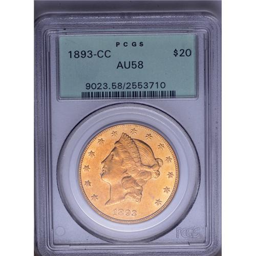 <B>1893-CC<$20> AU58 PCGS.</B></I> This is the final issue of the Carson City Mint, struck in the very last year of coinage operations at the Nevada branch. This is a remarkable example that almost appears as if special care were taken, as suggested by Rusty Goe: "Whether or not the coiner and his staff at the Carson Mint knew that 1893 would be the finale is debatable. What is evident from the surviving population of 1893-CC double eagles is that the workers put forth extra effort to produce the highest quality coins possible and collectors today can thank them for this. When beholding just about any problem-free 1893-CC in AU or above, one can see the superiority of the strike, luster, and color." Due to this superiority, the 1893-CC is an excellent choice for type collectors, assuming a date specialist hasn't already snapped it up. This example has gorgeous orange-gold color, sharp design details, and brilliant satin luster. For collectors of type coins who seek the first year of issue coinage, in this case 1870-CC, this final year issue provides an affordable alternative.<BR><I>From The Wyoming Collection.</B></I> <BR><BR><B>Important