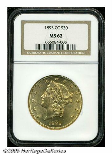 1893-CC $20 MS62 NGC. Very popular as a date, the