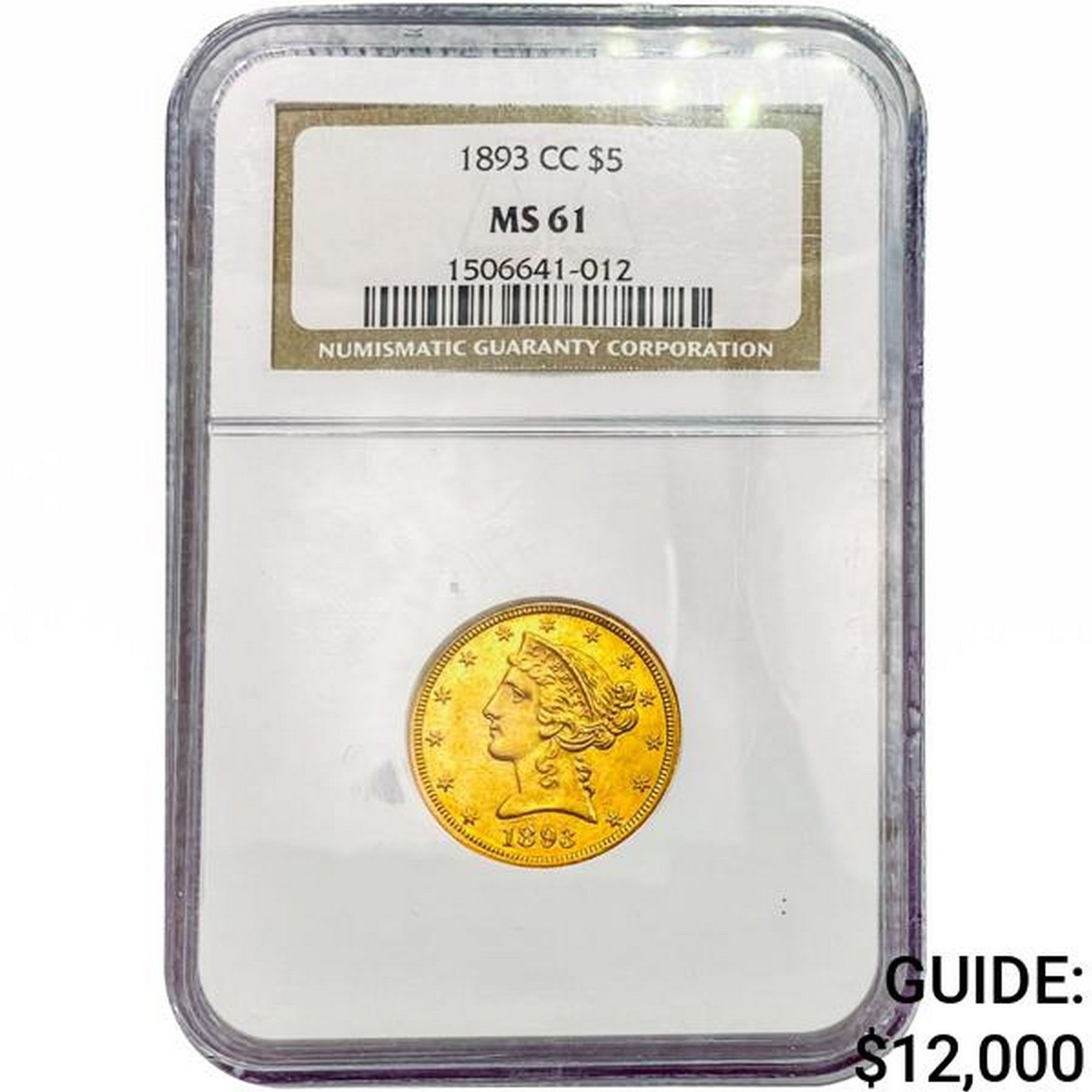 1893-CC $5 LH Half Eagle - Gold - NGC MS 61