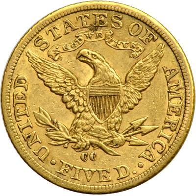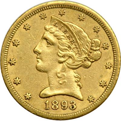 1893-CC $5 Liberty. EF-40. Low mintage date, only 14,000 struck. A desirable half eagle and the last date struck at Carson City Mint.