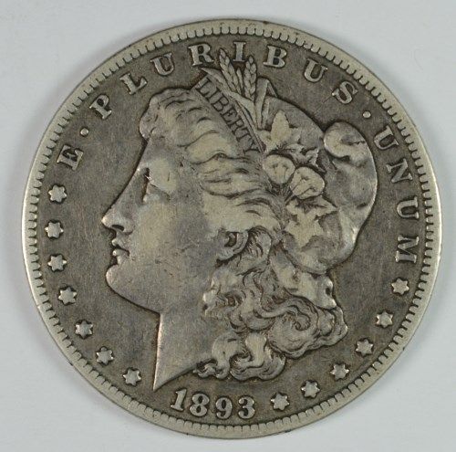 1893-CC MORGAN SILVER DOLLAR, VF-25 100% ORIGINAL KEY COIN!!