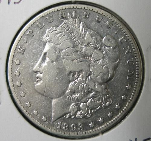1893-CC MORGAN SILVER DOLLAR. XF.