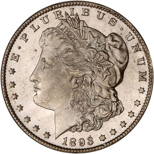 <b>1893-CC Morgan Dollar. PCGS graded MS64.</b> Untoned with blazing cartwheel luster that atones for a few microscopic marks on the attractively frosted central devices, although Liberty's cheek is amazingly clean and smoothly contoured here, a definite "plus." In order to understand the grade further, notice that it is struck with care only now and then found on one of the rare 1893-CCs; when it comes to the usual softness at the centers, this piece, on the contrary, received a nice sharp blow by the dies. Well worth considering <b>(PCGS # 7222)</b>