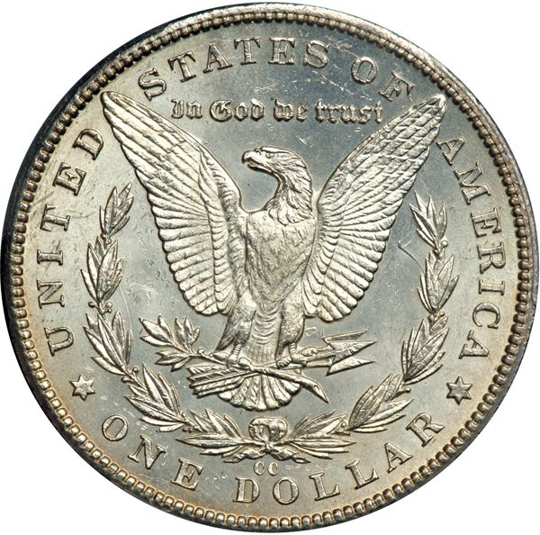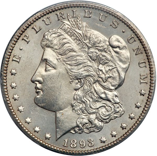 1893-CC Morgan Dollar. SEGS graded MS-64. Well struck and fully lustrous with a nice clean cheek. Our grade is MS-63 . An always-popular issue as the final CC-mint Morgan, the present lot offers a particularly lustrous survivor with silvery iridescence. The scattered distractions that often plague this issue are entirely absent, therefore we encourage a strong bid.