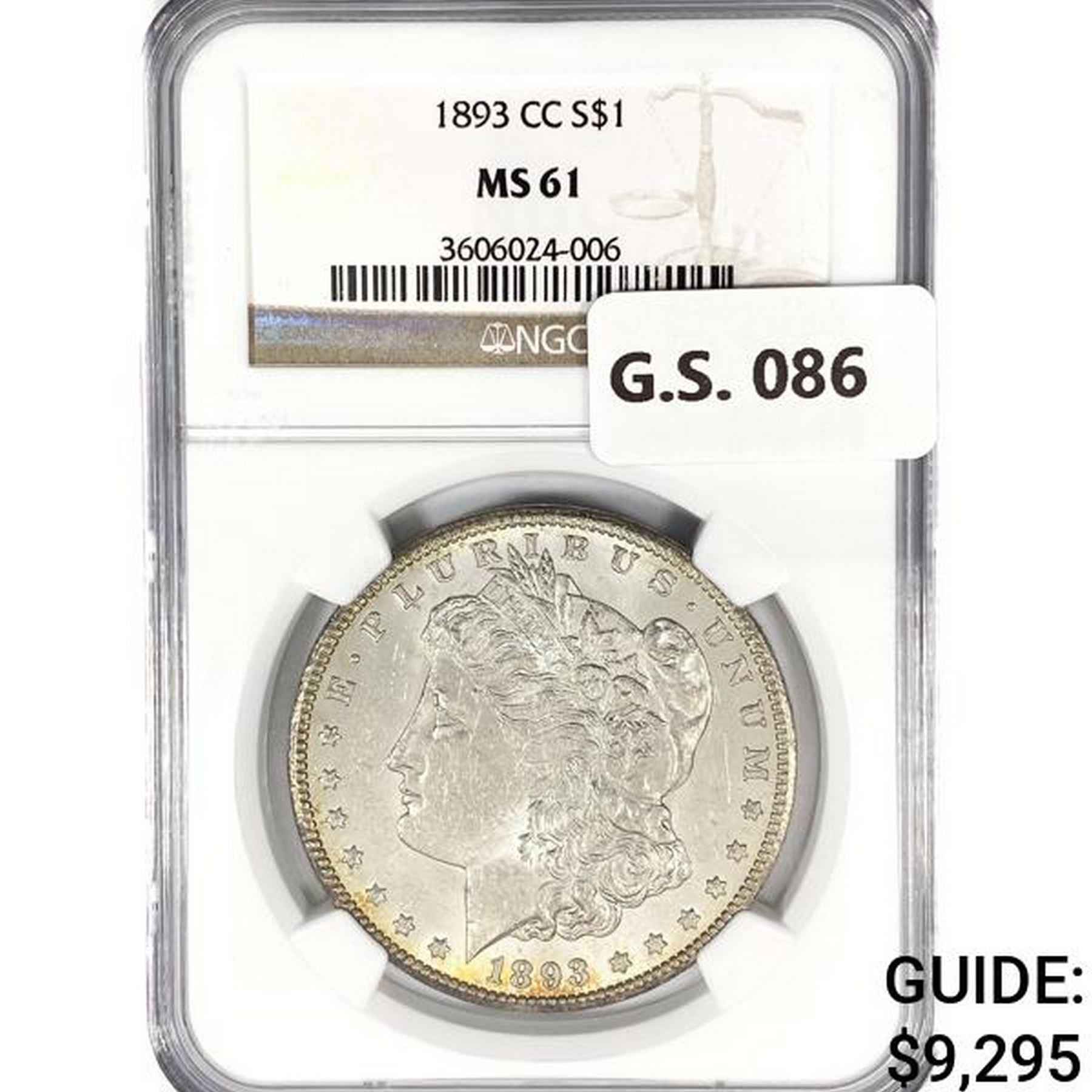 1893-CC Morgan Silver Dollar NGC MS61