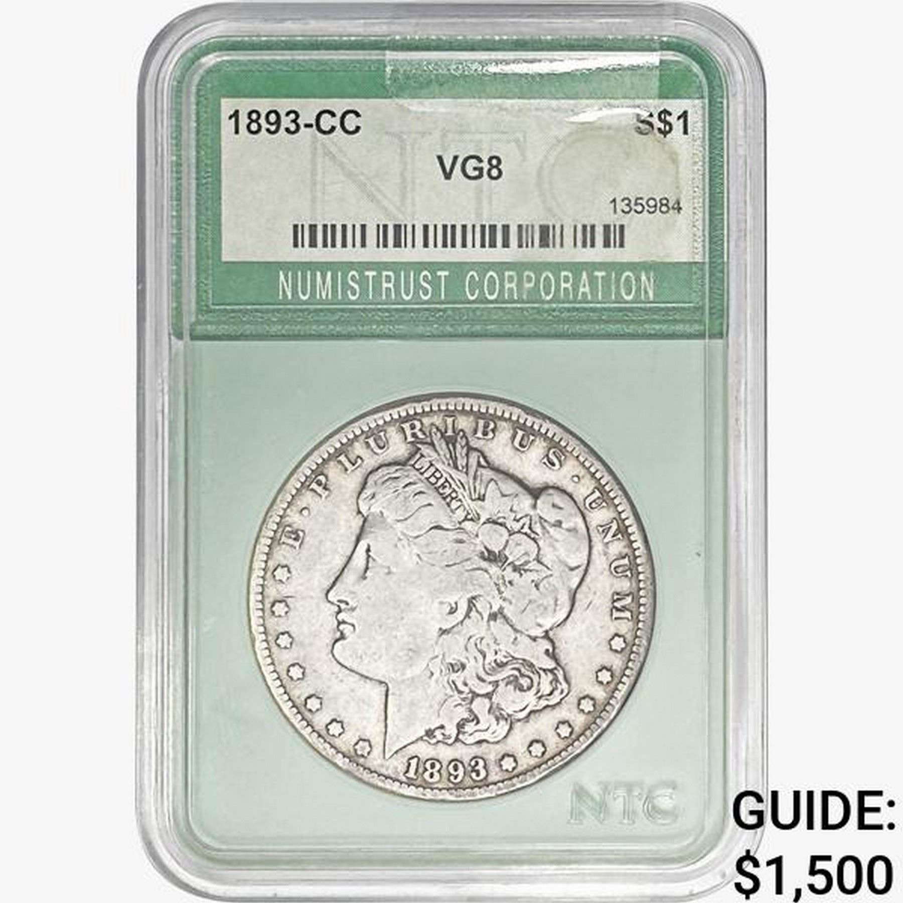 1893-CC Morgan Silver Dollar NTC VG8