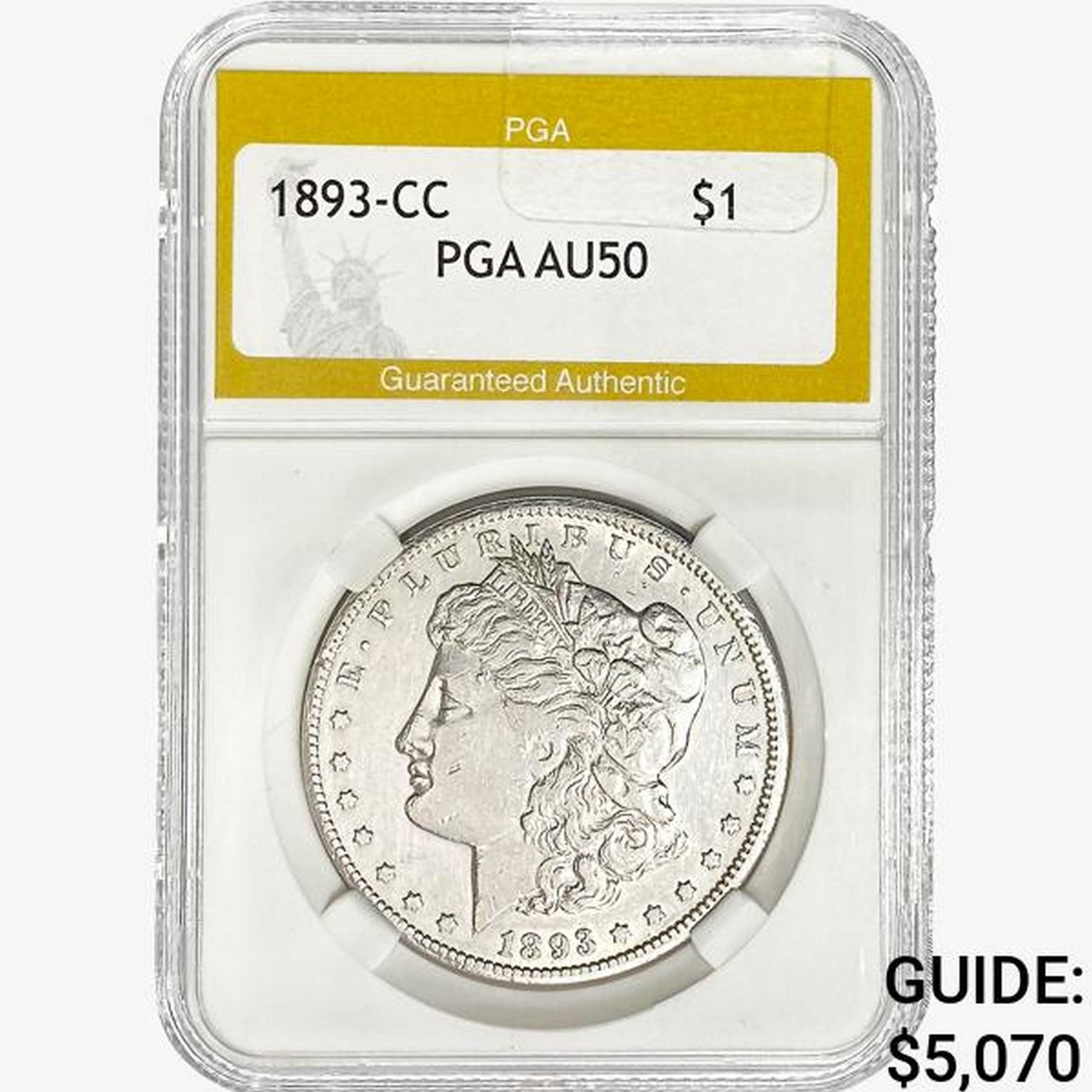 1893-CC Morgan Silver Dollar PGA AU50