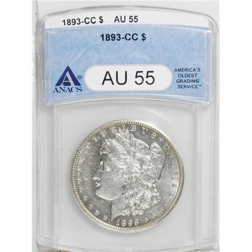 1893-CC S$1 AU55 ANACS. The hint of wear that appears