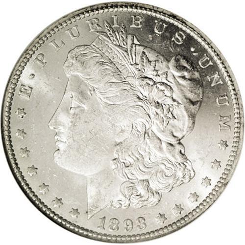 <B>1893-CC<img border='0' src='http://www.heritagecoins.com/images/star.gif' width=10 height=10>$1> MS61 NGC.</B></I> A brilliant and rather prooflike example of this popular Carson City issue, struck during the final year of coinage at the legendary facility. Typically struck in the centers. The fields are clean for the assigned grade, while the cheek is moderately abraded.