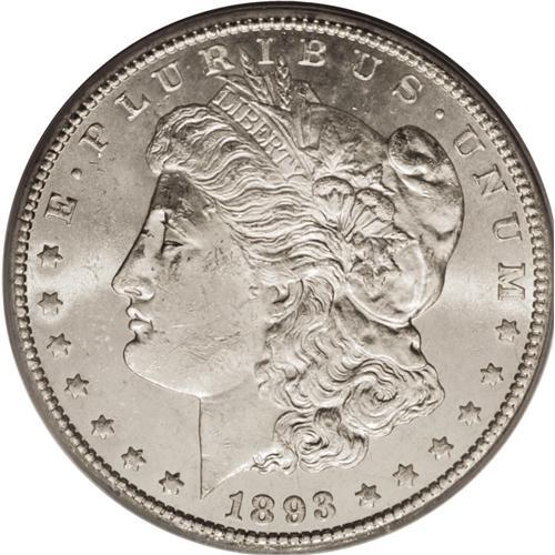 <B>1893-CC S$1 MS61 PCGS.</B></I> Many '93-CC dollars are weakly struck in the centers, as noted by Wayne Miller in his <I>Encyclopedia,</B></I> but this example shows nearly full definition in the hair detail just above Liberty's ear, as well as on the eagle's breast feathers. Flashy and brilliant, with coruscating luster on the obverse, and a pleasing frosty sheen from the reverse. The obverse is moderately abraded, while the reverse only shows a few scattered blemishes.<BR><BR><b>Shipping:</b> Coin/Currency (<a target="_blank" href="http://www.heritageauctions.com/common/shipping.php">view shipping information</a>)