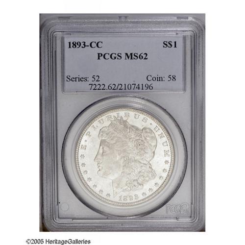 1893-CC S$1 MS62 PCGS. A bold, frosty-white example wi 1893-CC[S$1] MS62 PCGS.