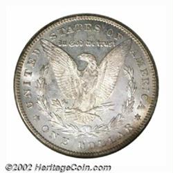 1893-CC S$1 MS63 NGC. A lovely example of this key Morgan issue, this piece is somewhat weakly defined in the centers with a few abrasions scattered about that account for the grade. The fields are bright and semi-prooflike with strong mint frost over the devices. Each side is overlaid with a pale accent of pinkish-golden color that is most attractive.From the Hans Poetsch Collection. Important notice: We expect to be auctioning lots at the rate of 200-250 per hour. Sometimes eBay Premier live bid software cannot keep up with that pace, so we strongly recommend that you place a realistic proxy bid now as insurance to avoid disappointment. Also please note that all Heritage/CAA lots purchased through eBay Premier carry a 20% Buyer's Premium. Please make sure you read the Terms and Conditions.