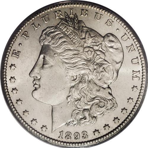 1893-CC S$1 MS63 PCGS. Lustrous silver, untoned surfac
