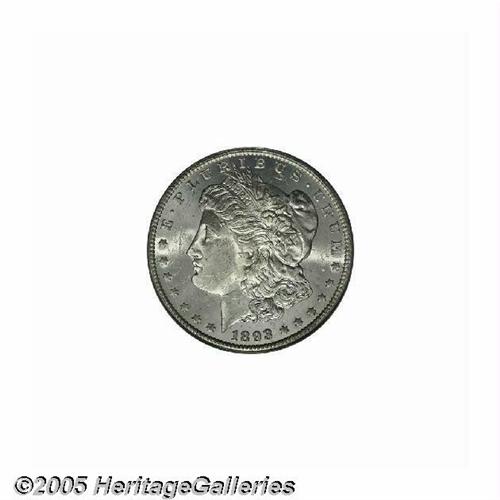 <B>1893-CC<S$1> MS63 PCGS.</B></I> Sharply struck and brilliant. The frosty devices nicely complement the satiny fields. The 1893-CC is noted for its status as the final silver dollar issue coined at the Carson City Mint. A mere 677,000 business strikes were minted together with about a dozen Proofs, the latter of which Walter Breen claims were produced in connection with closing ceremonies that took place at the Carson City Mint.