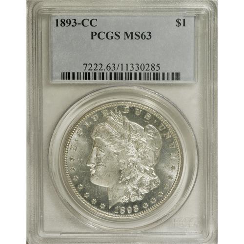 <B>1893-CC S$1 MS63 PCGS.</B></I> The 1893-CC was one of the few Carson City issues unrepresented within the famous GSA auctions from the 1970s. This moderately prooflike and faintly toned example has a well preserved reverse and only minor obverse contact. The centers are a bit soft, as often seen for the issue, but the remainder of the devices are bold.<BR><BR><b>Shipping:</b> Coins & Currency (<a target="_blank" href="http://www.heritageauctions.com/common/shipping.php">view shipping information</a>)