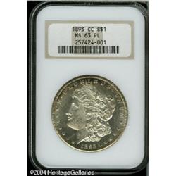 1893-CC S$1 MS63 Prooflike NGC. The strike is typi <B>1893-CC S$1 MS63 Prooflike NGC.</B></I> The strike is typically weak in the central portions, however the remainder of the details are sharp. Lightly toned and pleasing, without any serious marks. <BR><BR><B>Important notice:</B> Heritage usually auctions material at the rate of 200-250 lots per hour. On some occasions eBay Live bid software or the Internet may not be able to keep up with the pace of the auction. We recommend placing a realistic absentee bid now as insurance to avoid disappointment. Occasionally the auctioneer may eliminate or reject an eBay Live bid, and the auctioneer may also reopen a lot after the close of the eBay live bidding (usually because we missed an audience bid), and may reject your bid even if it shows you as the winning bidder. By bidding via eBay Live, you agree that Heritage may award the lot to another bidder at its sole discretion under the circumstances described above or any other reasonable circumstances. Since eBay bids are not shown to us until we open the lot on the floor, we treat those bids just like floor bids. In most cases the floor responds before the eBay bid is presented to us, due to Internet lag time, so for consistency we have made it a policy that floor bids are always considered first over tie eBay live bids. Also please note that all Heritage lots purchased through eBay Live carry a 20% Buyer's Premium. Please make sure you read the Terms and Conditions before you bid. This lot is being auctioned in conjunction with a live floor auction by Heritage Galleries & Auctioneers. All final auction and invoice information will be supplied by Heritage Galleries & Auctioneers, and all other information should be considered preliminary. Lot:7642