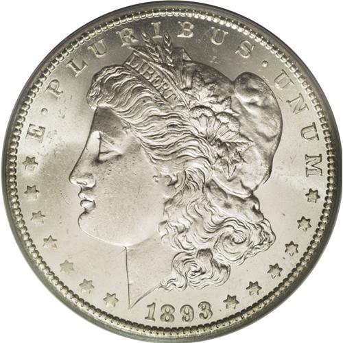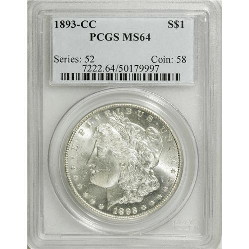 1893-CC S$1 MS64 PCGS. Frosty, fully brilliant surface