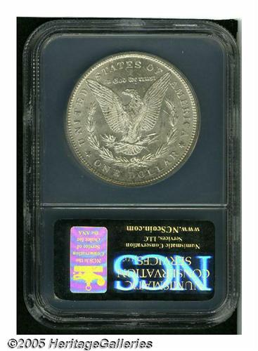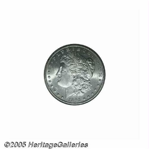 <B>1893-CC<S$1> Unc Details, Obverse Improperly Cleaned, NCS.</B></I> This lustrous, lightly toned, and well struck key date Carson City Dollar appears to challenge a Choice designation at first glance. Further evaluation locates wispy slide marks on the lower cheek near the mouth. Despite its relatively minor impairment, this piece will not be out of place in an Uncirculated holding of Morgan Dollars.<BR><I>From The Dr. John L. Pellegrini Collection.</B></I>