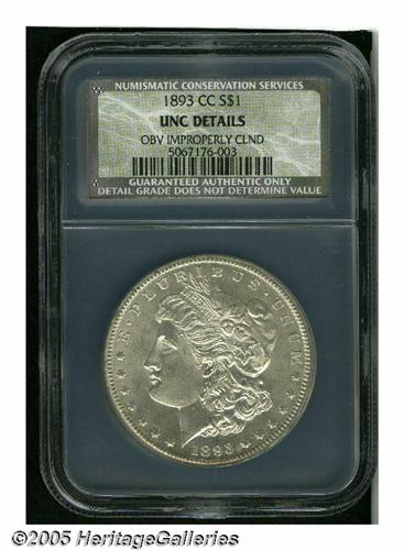 1893-CC S$1 Unc Details, Obverse Improperly Clean