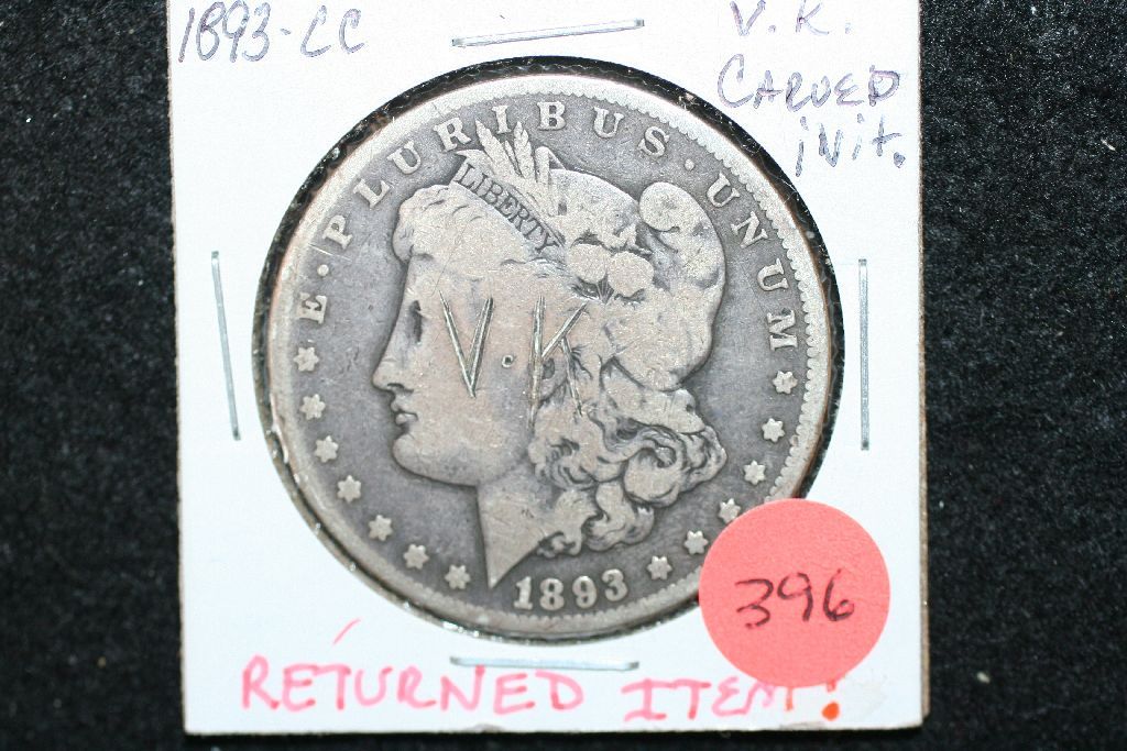 1893-CC Silver Morgan $1; V.K. Initials Carved in Face