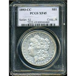 <B>1893-CC<img border='0' src='http://www.heritagecoins.com/images/star.gif' width=10 height=10>$1 XF45 PCGS.</B></I> Ample luster outlines the design elements of this key Carson City Dollar. A few moderate abrasions and rim nicks are present, but the eye appeal is nonetheless attractive. Lot:10412