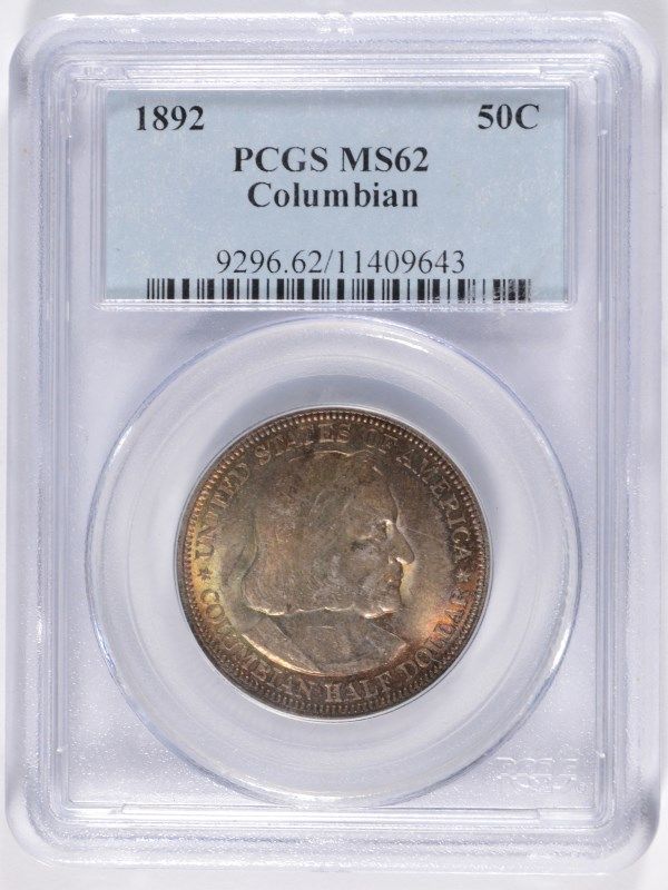 1893 COLUMBIAN EXPO HALF DOLLAR PCGS MS-62, PCGS HOLDER HAS 1892 ON HOLDER BUT