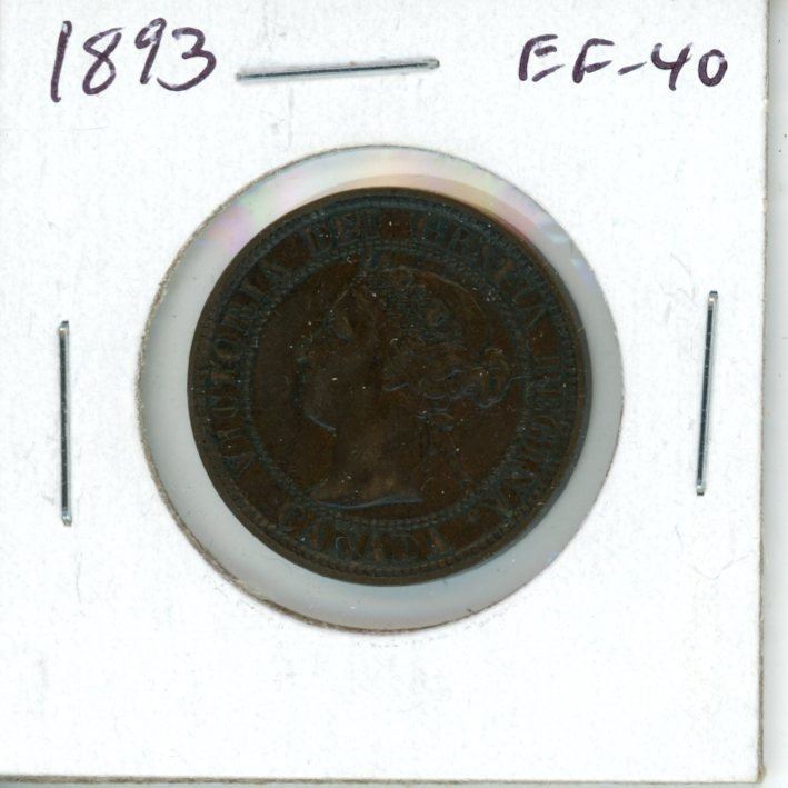 1893 Canadian Victorian Large Cent. EF-40. Nice.